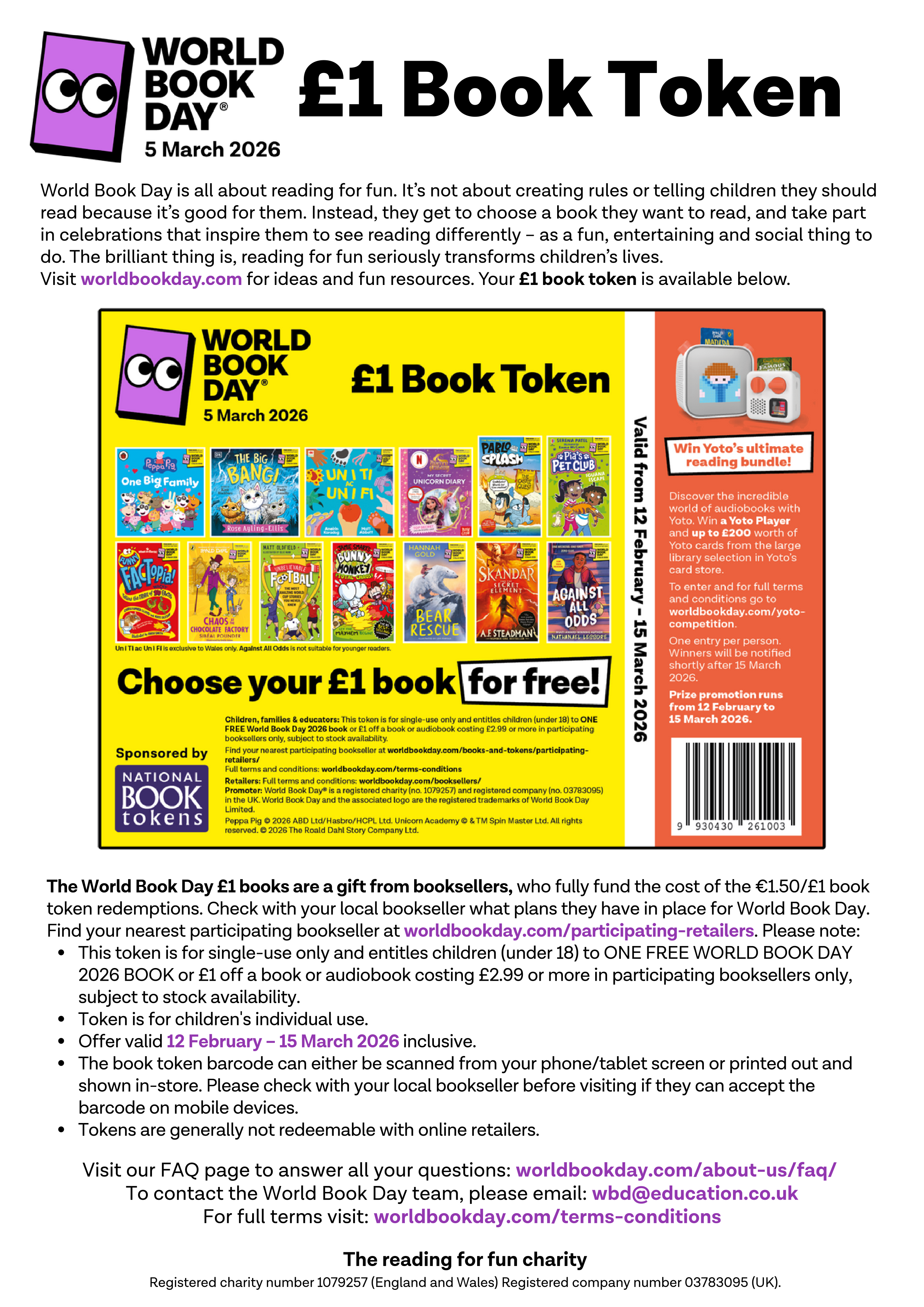 World Book Day is nearly here and the digital World Book Day £1 vouchers are available to download. Vouchers are valid from Thursday 12th February to Sunday 15th March.