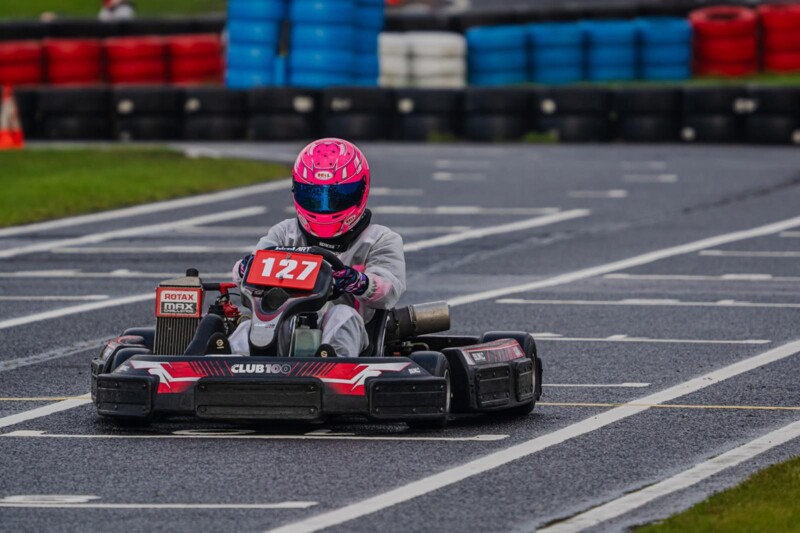 Supported by team owner Ami Jerger and mechanic Jess, Caitlin quickly adapted to the faster, grippier Junior Rotax machine. She demonstrated natural talent by steadily improving her lap times, reaching impressive speeds of up to 70mph while sharing the circuit with almost 30 other young drivers.